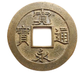 また、時代劇などでよく見かけます穴の開いたお金「穴銭」といいますが、皆さんご存知の寛永通宝や天保通報のほかにも渡来銭と言って中国、朝鮮半島の古い穴銭や母銭、銀銭、絵銭といった聞きなれないものもございます。「母銭・銀銭・絵銭」につきましては希少価値が非常に高く通常の穴銭よりも非常に高額になります。